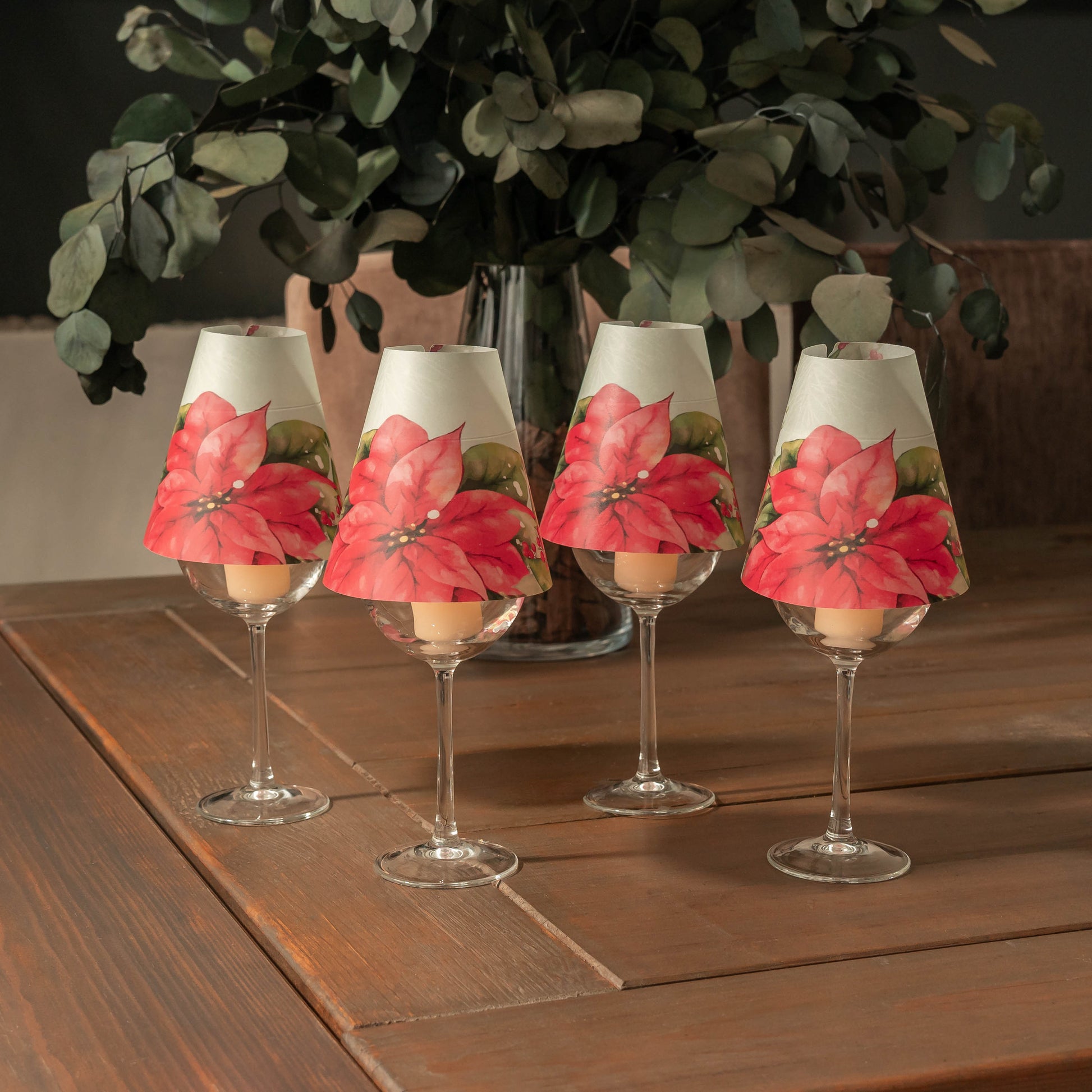4 Pantallas para convertir tus copas en candelabros. Simplemente mete una vela tipo tea light de pilas dentro de la copa, arma la pantalla y crea una atmósfera maravillosa en tu celebración. Las copas y velas no están incluidas.